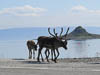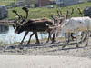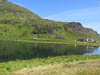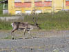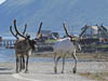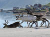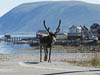This morning there was no sign of the cold and mist of yesterday, indeed everyone was out and about wearing summer clothing rather than the down jackets of yesterday. We paid the various lookouts a final visit and then we were on our way south bound. What a difference the bright sun made as we retraced the narrow coastal road, and tunnels, back to the town of Olderfjord where our southerly route departed from the route we had taken going north. At one of the nameless villages north of Olderfjord the local Reindeer population decided to give the tourists a show and we sat stopped on the side of the road for perhaps 30 minutes while a small herd of the animals busied themselves going this way and then that. It seemed like a random coming together and parting of the group only for them to rejoin in a few minutes. At one point the entire heard got together and headed for and entered an old derelict building.