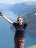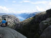 Today our goal was the famous Pulpit Rock (Prekestolen) it took us a while, and more interesting roads and nice scenery to get there, but eventually we pulled into the parking lot and were confronted by hundreds of cars and motorhomes all packed together. We had read in our guide book that this was the most visited tourist attraction in Norway and the number of vehicles in the parking lot gave credence to that claim.