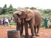 Today was an animal day. With a driver and car to take us around we started with a visit to an Elephant orphanage, the Daphne / David Sheldrick Elephant Santuary. They collect young elephants from the wild that are in danger for what ever reason and raise them. Each day between 11:00 and 12:00 they open up a feeding session to the pubic. It is a popular session and today there were maybe a couple of hundred people (including us) in attendance. The feed that looks like milk in large white bottles is a vegetable concoction developed over many years of experimentation.