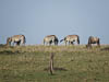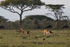After the Cheetah sighting last evening our group was eager to spend today looking for a Rhino, but alas our guide was adamant that this was not the area for them, but that he would keep his eye open. Our first good sighting of the day was a male lion happily munching on a kill by himself. The lion was, however being watched by a good many hyenas, jackals and vultures. It was an interesting spectacle as the hyenas tried to intimidate the lion into leaving the kill. Our guide pointed out that the hyenas had blood on their snouts and front legs and probably they made the kill but that the lion took it away from them. We watched for maybe 30 minutes, and a third jackal approached and then the lion casually got up and walked away. That started a bit of mayhem as the hyenas, jackals and vultures all scrurried for bits of meat and the ones that missed out chased the ones that got the food.