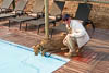 Before breakfast this morning a group of us accompanied Sylvester on his morning walk. For most of the walk Sylvester did his own thing, chased a few birds, took a rest, marked some territory. But there was an opportunity for the guests to get some up-close time, though the guides and handlers were careful in what they allowed us to do. They explained to us that "Sylvester likes to play, but he plays a bit rough". We did not need a second warning, one look at the size of his paws and claws was enough to make everyone cautious.