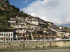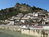 We had planned for today to be another short day and for it to end at the Albanian coast just south of the port and resort town of Duress. Via the internet we had located a beach front hotel and campground and thought that if it was "OK" we might spend a day or two there. Well as it turned out we never did get to it. The problem was exiting from the coastal multi-lane highway. Every time our GPS showed us an intersection at which we should turn/exit we were confronted by a highway edge with no way off. After this happened a few times we gave up on our beach side camp and headed to the next destination on Nina's list the town of Berat, a UNESCO world heritage site.