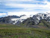 There is a famous hike in this part of Iceland called Laugavegurinn. It runs from a place called Porsmork (actually spelled ÞORSMÖRK and pronounced thorsmork) in the south to a place called Landmannalaugar in the north. It seems to be about 55km in length and generally takes a 4-5 days to walk. Well after the zodiac tour affair we set off to find the southern end of this hike which was reported in the guide book as a little forested oasis in a landscape that is otherwise pretty much bare alpine. What the guide book did not tell us was that the "road" to this place was barely graded river bed and numerous river crossings. So to get to this fabled place we bumped and squeaked along for a couple of hours regularly being overtaken by the now common place Icelandic off road vehicles with huge tires. We even saw one Ford van converted to 6x6. However the weather gods were good to us and we had a sunny afternoon with spectacular views of the mountains and glaciers.