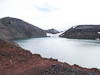 This morning before leaving Landmannalaugar I took the opportunity to try out a thermally heated natural pool right by the camping ground. My theory that the morning would be less crowded was correct and a good thing too, as the water temperature was very inconsistent and to stay pleasantly warm one needed to be right by the inflow of hot water. So suitably refreshed I helped Nina pack up and we were underway. With us today was a young Romanian women we picked up (as a hitch hiker) yesterday seemingly stranded in the wilds of Iceland as we were traversing the 50 km track into Landmannalaugar. She was traveling with us again today as a means of getting back to a more "main" road.