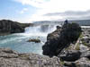 Chores kept us around the campground this morning so by the time we got underway the weather had stabilized and guess what - its a sunny day. Our first stop today was one of the big tourist draw cards in Iceland Godafoss (water fall of the gods) a quite impressive waterfall. The name derives from (as legend has it) that one of the early kings was required to make a decision at the annual parliament about whether Iceland would become Christian and after much deliberation he decided in favor of the "yes" case. On his journey home after the parliament he threw all his idols of the Norse Gods into this waterfall.