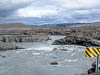 We traveled for an hour or so more, before finally arriving at the outpost of Drekagil. A small collection of buildings at the base of a volcanic cone. It was like a winter scene with a white carpet at the feet of the buildings. We stretched our legs by taking a short hike into a nearby canyon and were rewarded for efforts by some breaks of blue sky and sun (followed by snow showers).