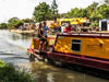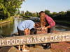 We stopped after a few minutes near the local super market (which we did not previously get to) and then we were really on our way. Over the next hour we started to get the hang of steering this very long boat in this very narrow canal, passing other boats and passing under bridges (with only 12 inches to spare on either side). It was a pleasant sunny afternoon and we found a nice grassy bank at which to stop for the night about an hour after leaving the super market.