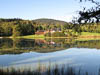 We stopped for the night at a campground called Aboyne Loch Camping and Caravan Park. It is situated on a small lake near the town of Aboyne (go figure). Quite a nice place. The surprising thing though is that there seems to be only a few places for campers (either tent of motorhome) and the site is almost entirely occupied by what in America we would call mobile homes, almost all of which are painted a uniform green. The second surprise is that there is almost no one here, so it feels like we are camping by ourselves.