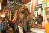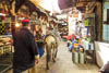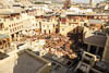 We spent the morning exploring (with some local guides) the old Medina of Fes. Medina means city but with the implication that it is the Arab part of the old city. In the case of Fes this is an old (14th century) walled city, designed in the days before motorized transport and therefore only suitable for people and donkeys with the streets only 6 feet wide and often covered by buildings. We did the obligatory stop at a carpet shop and thankfully Nina and I were able to resist before moving finally to the highlight of the morning, a visit to a leather shop that overlooks the famous tannery of Fes. The tannery is a small courtyard, surrounded by 3 and 4 story buildings. The courtyard is entirely composed of stone pots about the size of a small hot tub. In these tubs the hides of sheep, goats, cows and camels go from smelly fur covered skins to raw leather. The tannery has been in operation here for 1000 years and the process does not seem to have changed much. The ingredients for the process are limestone, pigeon poop (ammonia), water and men.