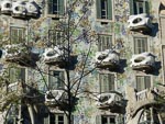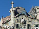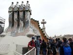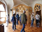 Back into the city this morning for another Gaudí building, another apartment complex called Casa Batlló, though in fact this building was only renovated (not constructed) by Gaudí for Josep Batlló. Like other Gaudí buildings there are numerous features of interest, roof fixtures to hide chimneys and air ducts, light well, attic area for services like laundry, but key theme of this building remodel is the ocean like curves and colors throughout the building.
