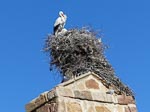 Today we decided to venture off roads of motorway quality onto national-highway standard roads, so at Calatayud we turned NW onto the N-234 towards Soria and eventually Valladolid and then back onto motorways into Salamanca. The N234 turned out to be a good choice with lots of small villages this time with the road going right through the middle rather than bypassing as was the case yesterday on the motorway. We discovered that every village has at least one church (some times more) that seems to be much larger than could be justified by the size of the village and that many of those churches (and also many electrical poles) have their own resident Stork and brood.