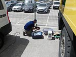 More good roads, 13 euros in tolls, and the 200km or so from Valdevaqueros to Sevilla passed quickly and we found ourselves in very dense traffic heading towards our selected camping spot for the night. Another area de autocaravanas. This one in the dock area of Seville. When we got there it became obvious that it was a vehicle work shop, and storage area for cars that had given over part of the area to motorhome parking. Through out the afternoon car-carrier semi-trailers arrived to collect and/or deposit cars.