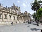 We spent a bit more time today exploring the older part of Sevilla and in particular admiring the Cathedral which is advertised as the "largest in Spain". It really is a monster building. One of the more novel features is an internal courtyard that is also an orange grove. The town center was very busy with people everywhere and a good number dressed in their best formal wear for some kind of celebration.